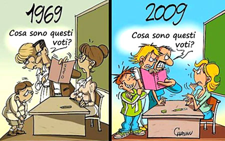 Si è assistito ad una forma di democratizzazione della scuola e del sapere per cui, sì, la scuola doveva essere aperta davvero a tutti, ma di pari passo si è andato perdendo il valore della meritocrazia. Chi abbia a che fare con la Scuola oggi sa cosa davvero succede al suo interno: voti per gran parte dell’anno gravemente insufficienti diventano magicamente sufficienti per richiesta del dirigente o perché i docenti non vogliono tenere i corsi estivi di recupero, visto che sarà assai improbabile la bocciatura a settembre, o ancora dirigenti scolastici che dichiarano di mettere a verbale il docente cattivo che propone la bocciatura ed avvenimenti simili. Gli studenti arrivano a fine percorso scolastico senza aver davvero mai colmato le proprie lacune (sotto forma di debiti formativi).