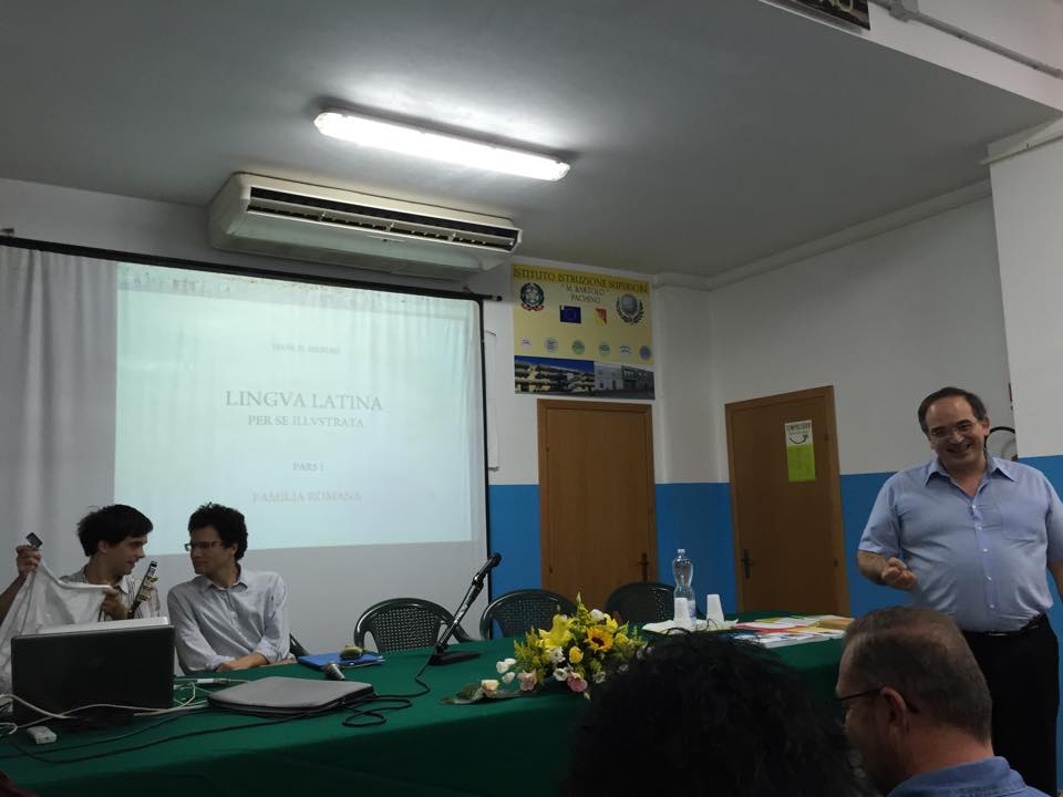 Più di quaranta insegnanti da tutta la Sicilia hanno deciso, come noi, di partecipare a questo corso di formazione. In un momento come questo, in cui nella “Buona Scuola” non si parla d’altro che di formazione e di scuole che devono investire nella formazione degli insegnanti, la cosa che salta subito agli occhi all’Istituto “Bartolo” di Pachino, è l’entusiamo dei colleghi che hanno deciso di tentare una nova via docendi delle lingue classiche, è l’entusiamo del Dirigente Scolastico, prof. Vincenzo Pappalardo, che ha promosso e fortemente voluto questo incontro, per dare la possibilità non solo ai suoi docenti ma anche a tutti coloro che lo avessero voluto, di trovare per due giorni un’isola beata nella triste vita dei “corsi di formazione” che spesso, ahimè, servono a poco o a nulla.