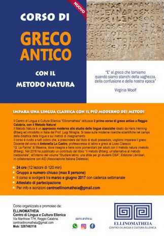 Il Centro Ellinomatheia di Reggio Calabria istituisce un corso di greco antico con metodo natura.